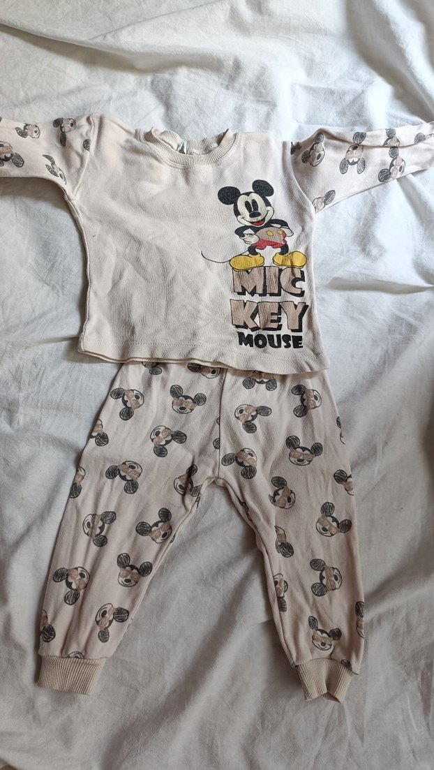 Mickey Mouse Baskılı Bej Pamuklu Çocuk Pijama Takımı