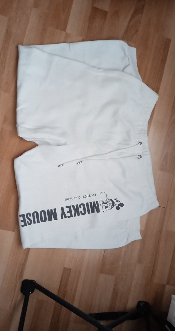bol kesim ve Mickey Mouse baskılı beyaz kadın eşofman altı, günlük rahatlık ve sokak stili için uygundur.