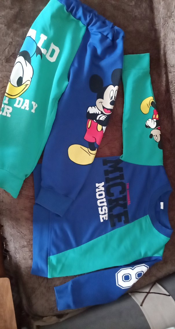 Renkli, uzun kollu ve yuvarlak yakalı erkek- kız çocuk sweatshirtü. Yumuşak kumaş, baskılı Mickey Mouse figürleri ve cırt cırtlı detay içerir.