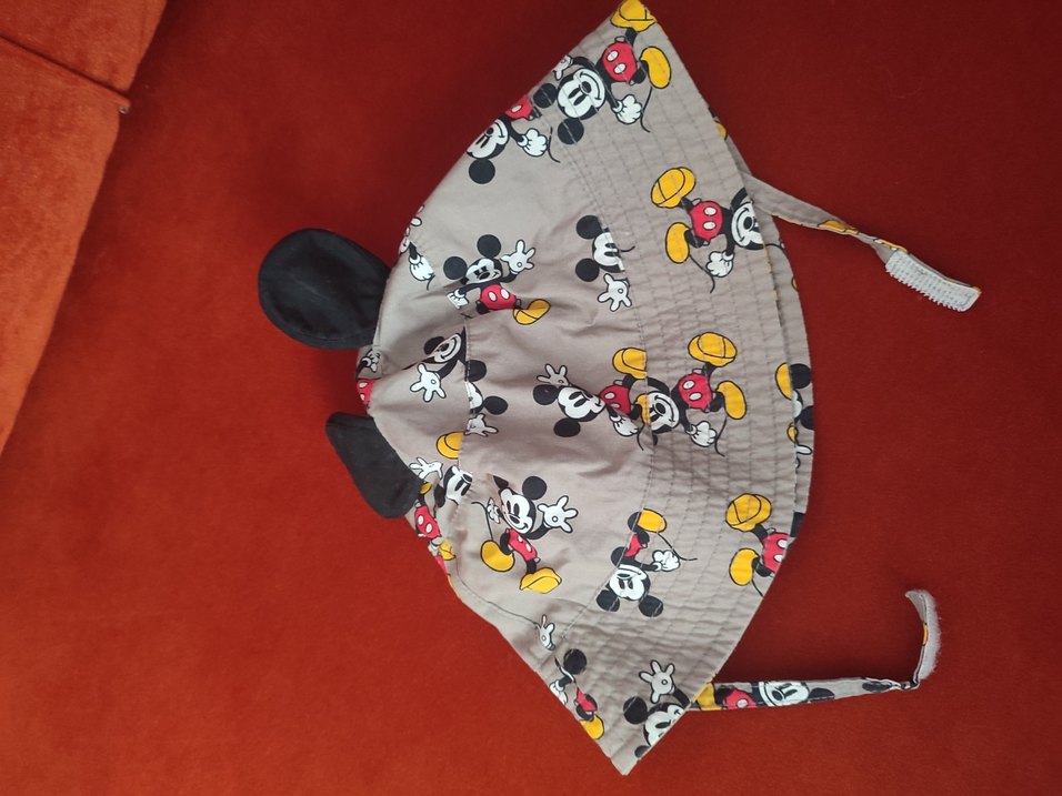 Gri renkte, Mickey Mouse baskılı çocuk şapkası, yumuşak siyah kulak detayları içerir. Sentetik kumaştan yapılmıştır. bır kaç kez takıldı sorunu yok :)