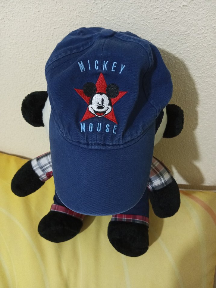 Koyu mavi şapka üzerinde Mickey Mouse ve kırmızı yıldız işli.