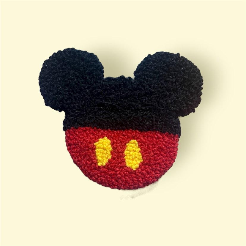 Mickey Mouse şeklinde, yumuşak dokulu ve renkli tasarıma sahip bardak altlığı