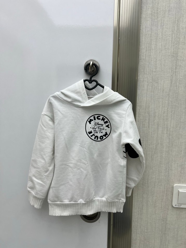 Arka tarafında Mickey Mouse ve arkadaşları bulunmaktadır. Sol kolunda da Mickey Mouse. Kapüşonlu spor bir sweatshirt.