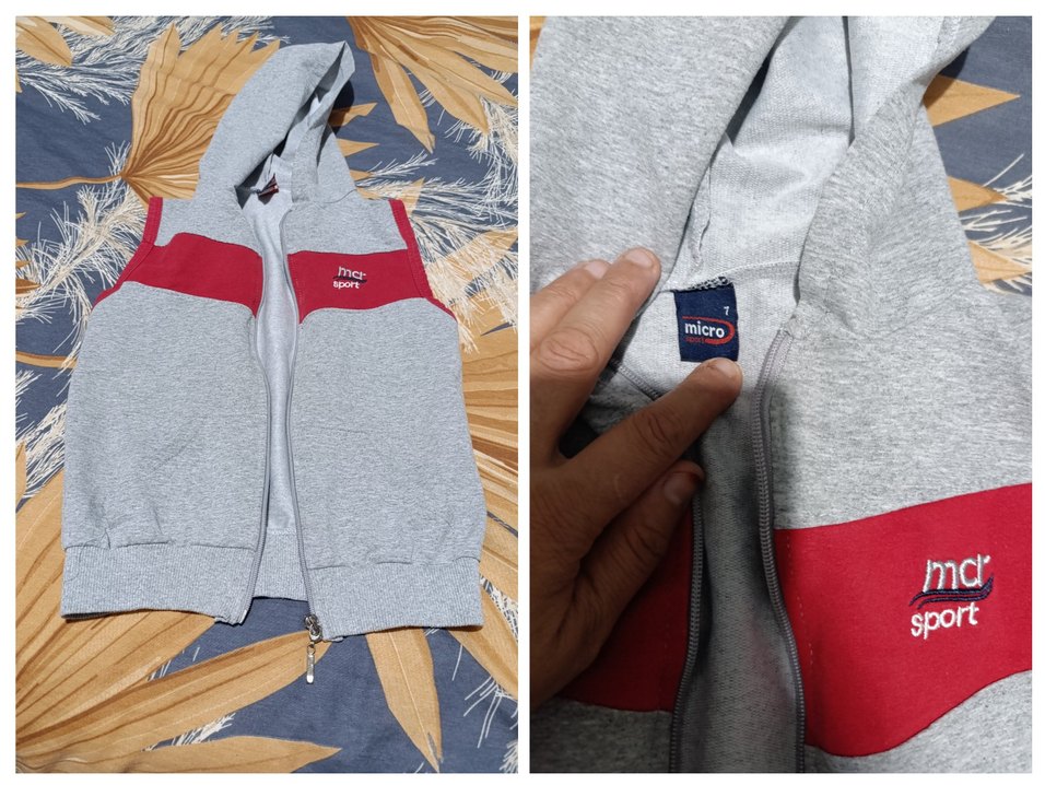 Fermuarlı ve uzun kollu, yumuşak fleece kumaştan yapılmış, baskılı ve kırmızı detaylı Micro marka gri erkek sweatshirt.