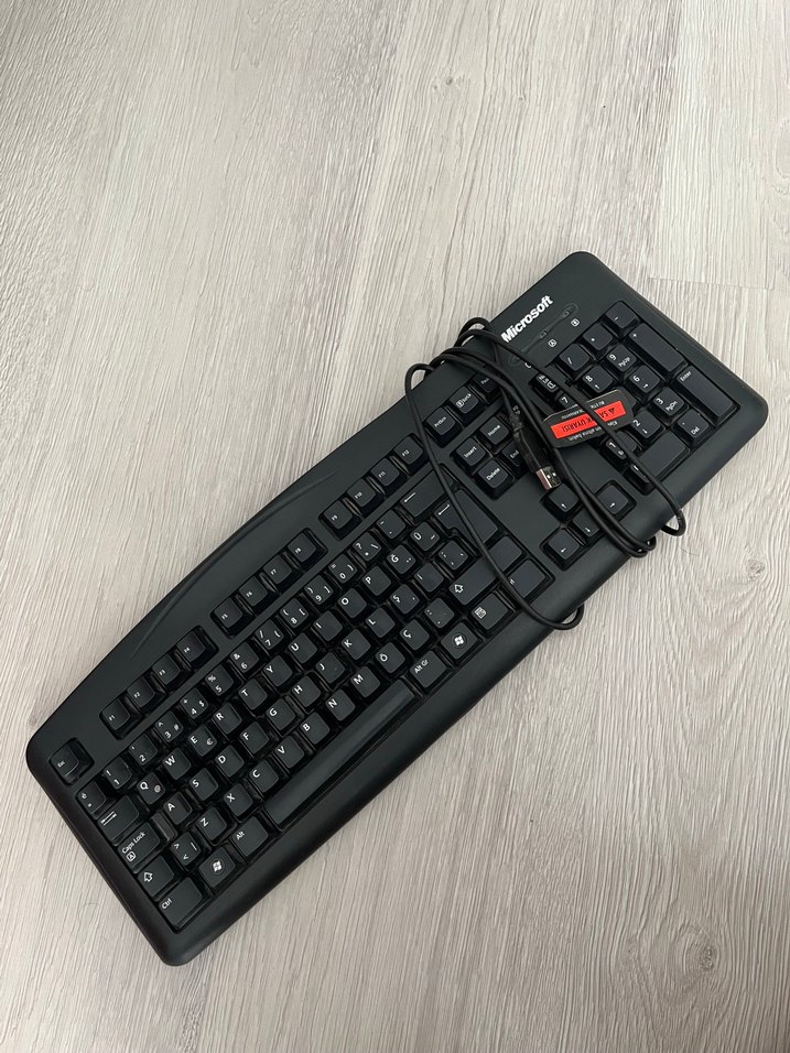 Microsoft marka, tam boyutlu tuşlara sahip siyah kablolu klavye. Masaüstü kullanım için uygundur. ️