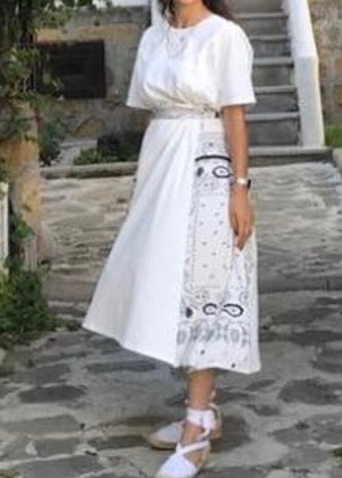 Midi boy zara marka beyaz elbise. Belinde kendi kumaşından kemeri vardır. Hiçbir kusuru yoktur
