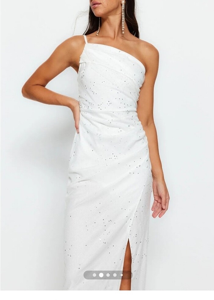 Mezuniyetimde 2 saat giydim yalnızca 38 - 40 beden uyumlu Askısı ayarlanabilir Arka yırtmacıni kapattım Ten rengi veya beyaz içlik giyilirse sıkıntı olmaz öbür türlü iç gösterebilir Nikâhta vs de hoş durur parıltılı simleri mevcut
