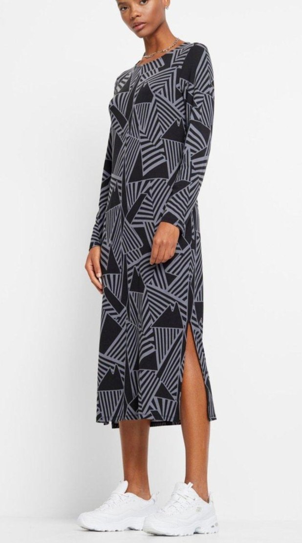 Yanları yırtmaçlı desenli midi boy rahat ve spor elbise et gibi esnek yumuşacık viskon penyeden rahat kalıp esnek ürün