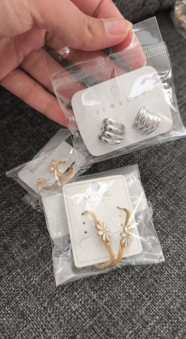 Altın renkli, papatya desenli ve payetli midi küpeler. Bohem minimalist tarzı için uygun, günlük kullanıma normal uzunlukta zarif bir seçenek.