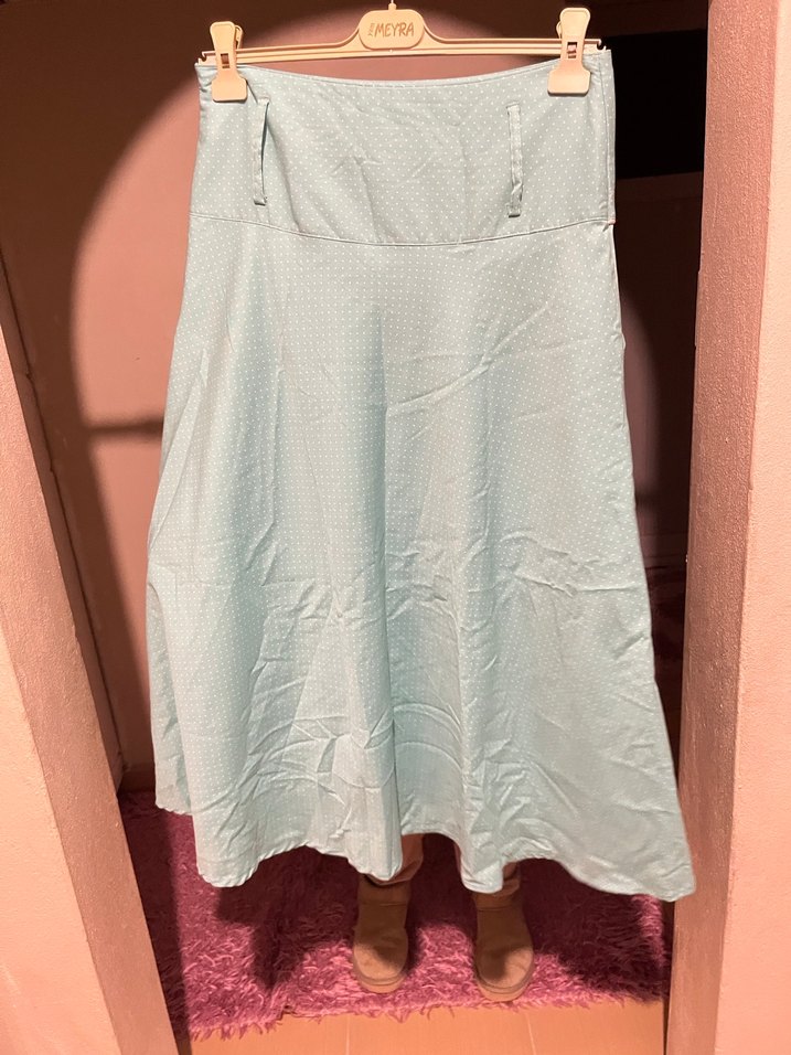 Beyaz midi boy, salaş kesim, drapeli kadın etek. Yumuşak sentetik kumaştan, günlük kullanım için minimal ve trend tarzda.