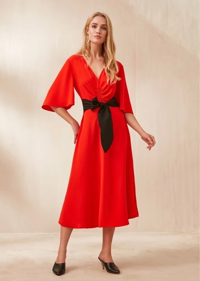 Ürün midi boydur. 38 beden. Bazı yerlerinde ufak çekilmeler mevcut. Görsellerde ekli. Kırmızı ve turuncu arası bir rengi var.