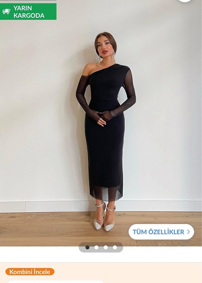 Masspera Asimetrik yaka Tek omuz tül detaylı midi boy çelbise sadece 2 saat giyildi