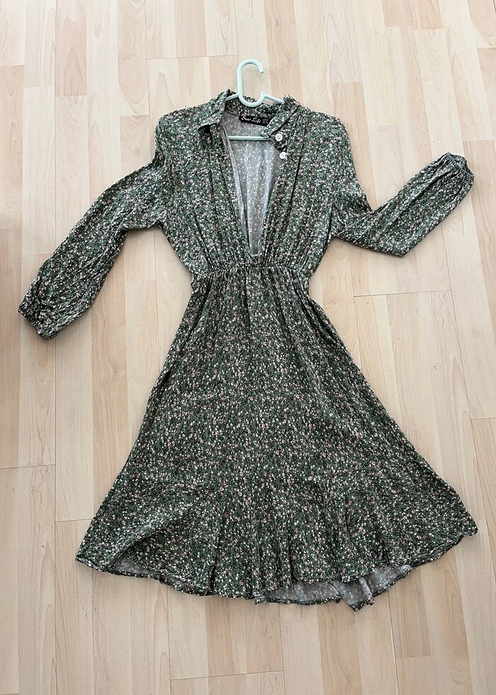 Çiçek desenli giriş tiril bir elbise bilekleri lastikli çok rahat bir elbise kumaşı incedir terletmez