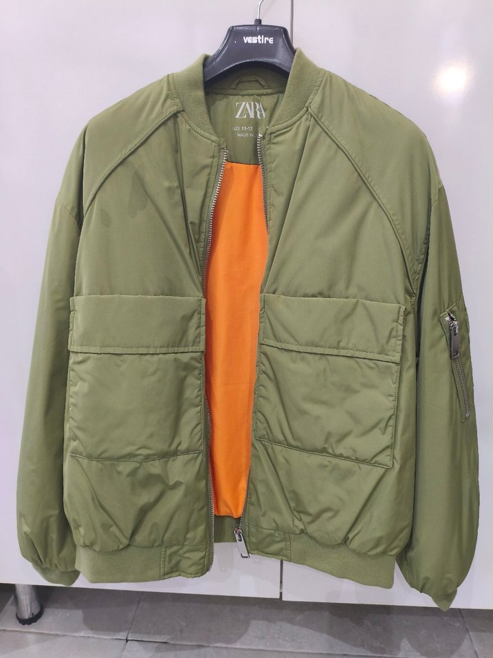 Midi boyda, fermuarlı ve uzun kollu ceket. Yuvarlak yakalı ve bol kesim, sentetik kumaştan üretilmiştir. Hiç kullanılmadı.