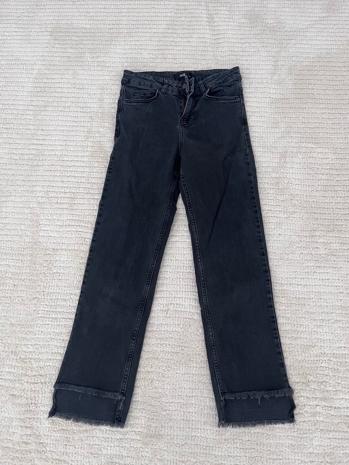 Gri renkte, midi boy ve regular fit kadın denim pantolon. Rahat ve şık görünüm için ham kenar detaylı, günlük kullanıma uygun.