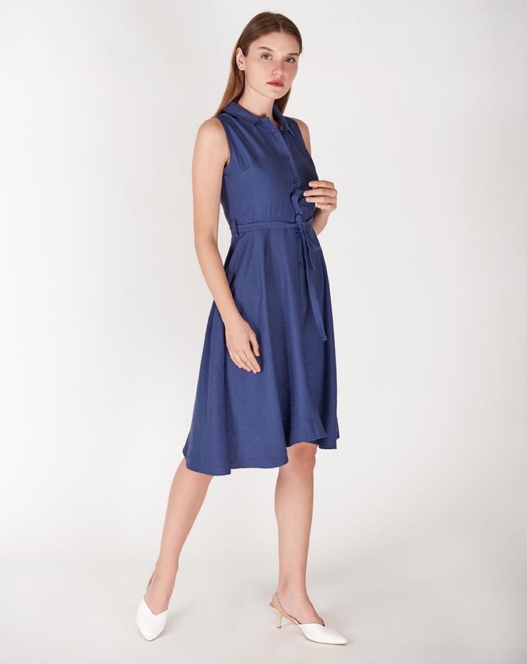 İndigo rengi, düğmeli, cepli, midi boy elbise. Ürün m beden ancak 36 bedene uyumlu olduğu için s beden olarak belirtilmiştir.