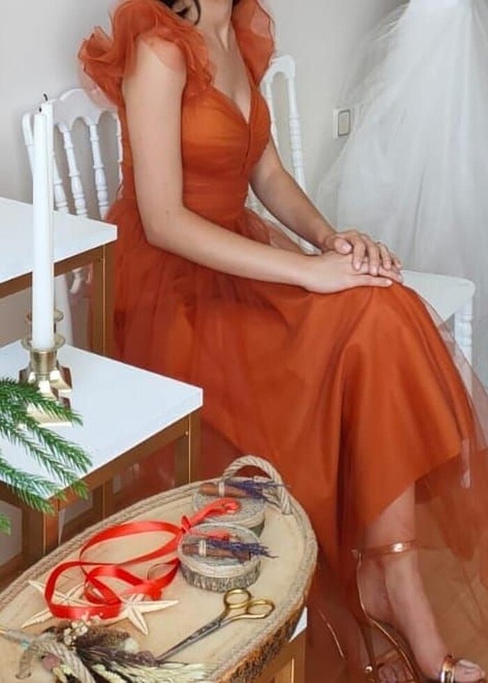 Nişan için 1 kez kullanıldı. Bir daha kullanılamayacağı için satıyorum. Çok çok beğenerek aldım ve kullandım. Tarçın-turuncu renginde midi boy. Sırtı iplerle ayarlanabiliyor. Ankara karum avmden aldım. 34/ 36 beden ile uyumlu