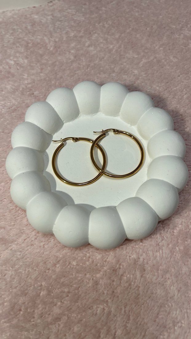 Midi boy bohem stilde, desensiz halka küpeler. Minimalist ve zahmetsiz şıklık sunar. Düğün ve günlük kullanım için uygundur. Yumuşak pastel beyaz renkle zarif görünür.