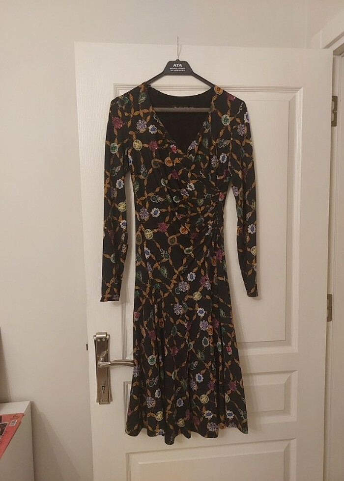 V yaka astarli midi elbise. Astarı vardır, can etek. Yandan gizli fermuarı var