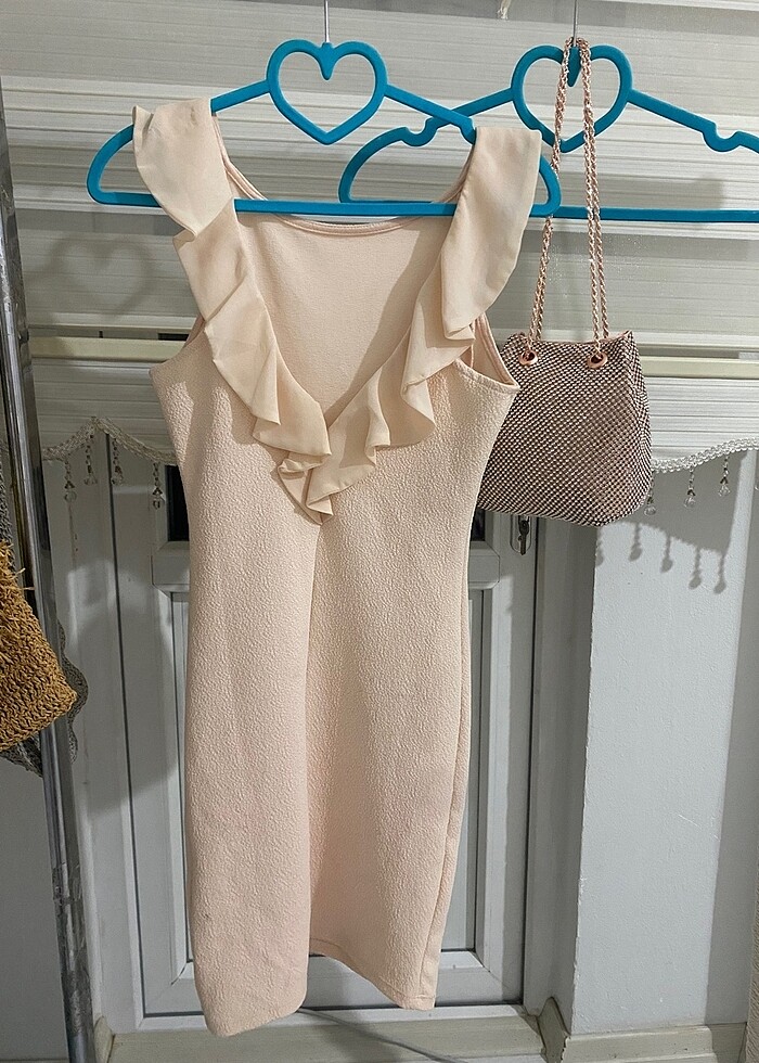 Ürünü sadece 1 akşam giydim hiçbir sorunu yok. Esnek ve vücudu saran bir kumaşı var. Sırt dekoltesi mevcut. Pudra renginde. Etiket medium ama daraltma yapılmıştır 34 beden olanlar tercih edebilir