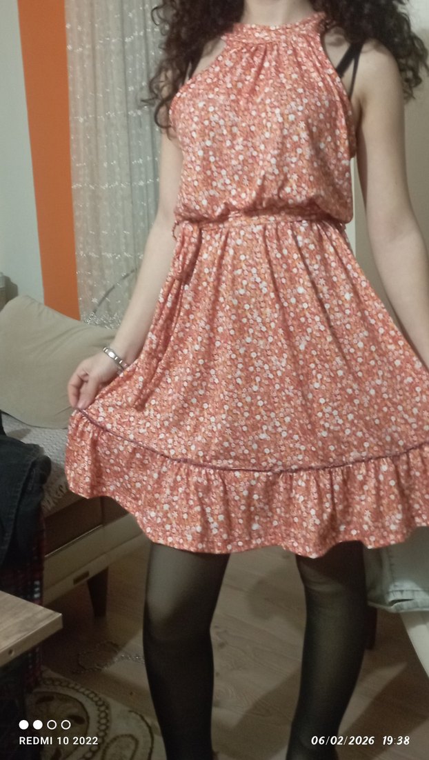pastel çiçek desenli, bol kesim midi elbise. Yumuşak sentetik kumaştan, bohem tarzına uygun, fırfır detaylı.