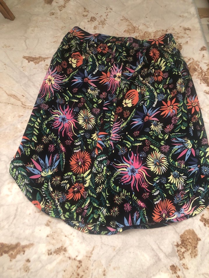 Rahat kesim, renkli desenli midi boy düğme detaylıdır. Kısa boyu ve bohem tarzıyla açık hava etkinliklerine uygundur.