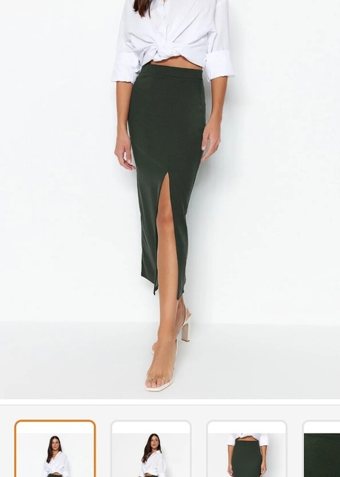midi etek. haki renk. 1 kere giydim