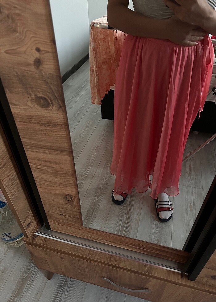 Şifon iki katlı beli bağlamalı plaj için uygun iç gösteriyor hiç giyilmedi 38-40 beden uygundur
