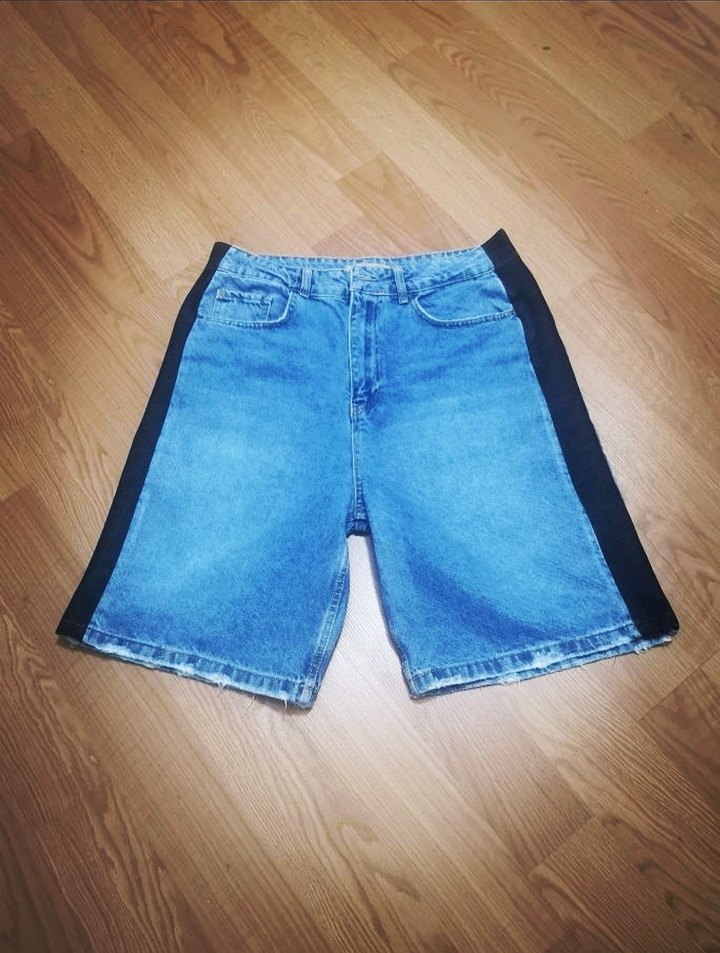 Midi Jean yanlarından lacivert kumaş ile genişletilmiş ve L beden olmuştur