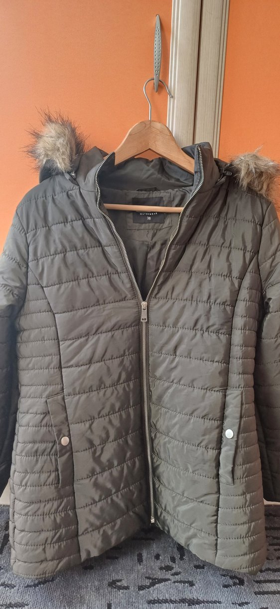 Midi Kadın Kışlık Mont Kürklü Kapüşonlu haki renk