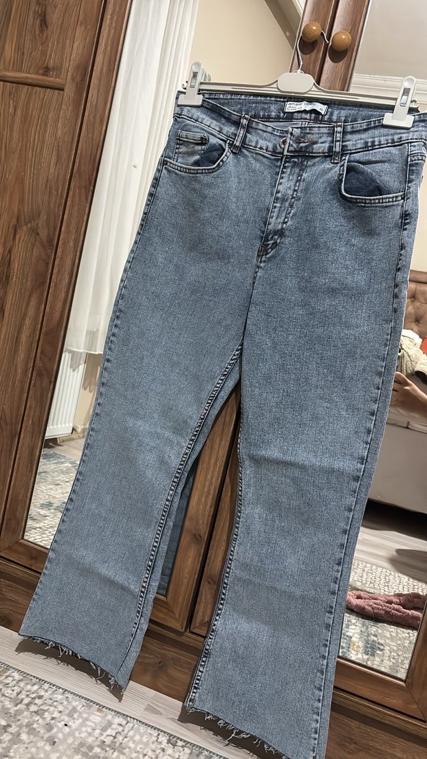 Kadınlar için gri renkte, midi boy, regular fit kot pantolon. Desensiz, gündelik kullanıma uygun sade ve rahat bir modeldir.