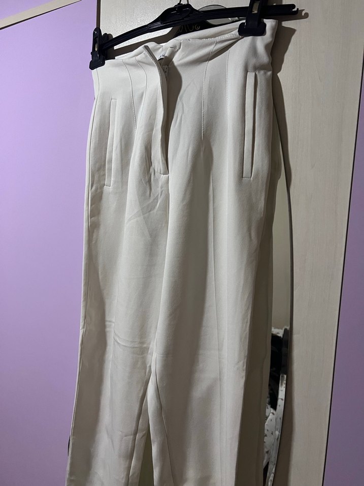 Beyaz pamuk kumaştan, normal kesim ve midi boyda, minimalist normcore tarzında günlük kullanıma uygun pantolon. ✨