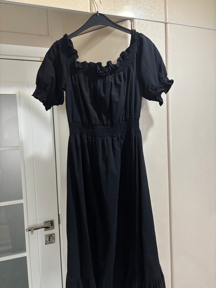 2 kere giydim. Esneme payı baya var. Beli ve kolları lastikli. Boyu 109 cm. Yırtmacı yok. Beli 35 cm. Kolları 31 cm.