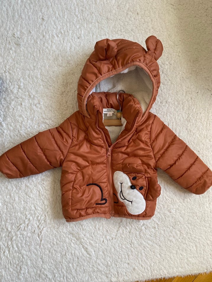 Kahverengi, kapüşonlu ve kürklü detaylı erkek çocuk montu. Renkli nakış desenleri ve yumuşak, sıcak tutan fleece kumaşı ile şık ve rahat.