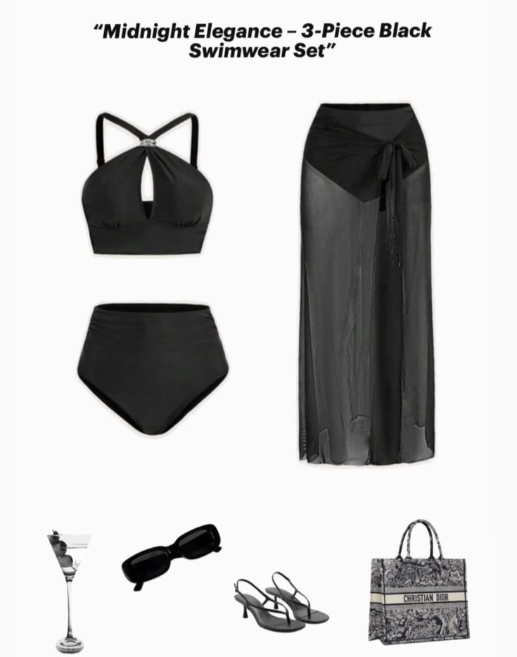 Midnight Elegance 3 Parça Siyah Mayo Takımı