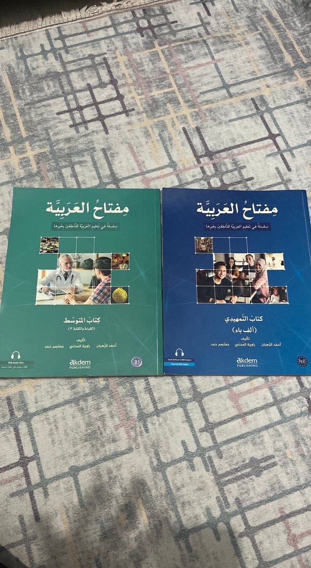 Akdem yayınevinden Arapça öğrenimi için başlangıç ve orta seviye iki ciltlik Miftah Al-Arabiya üniversite kitapları seti. Sıfır kullanılmadı ikisi de Ayrı ayrı fiyat 300 tl