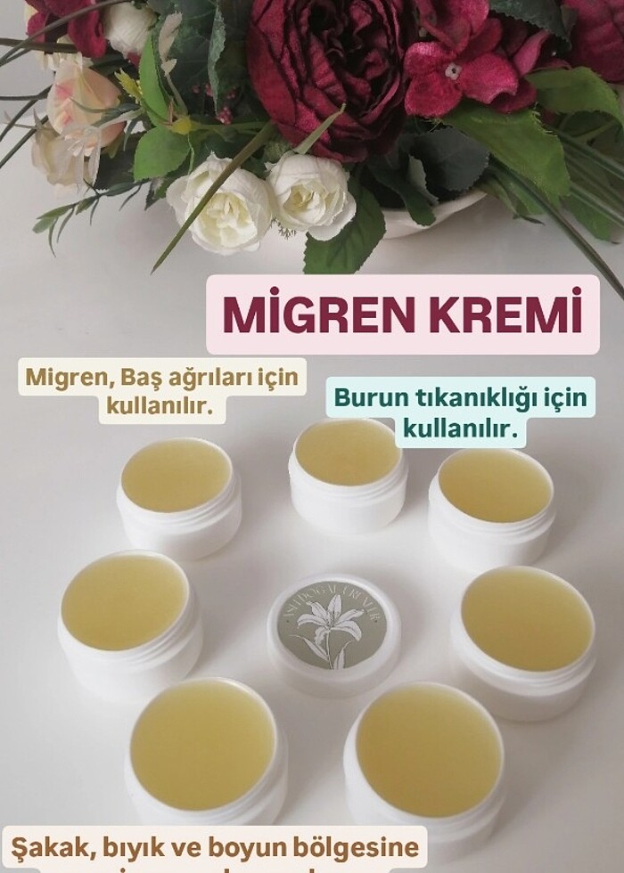 Uçucu yağların ağrı kesici özelliği ile hazırlanmış bir krem 20 ml #migren#