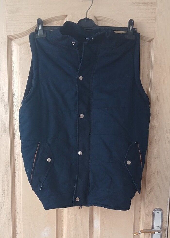 XL beden az giyildi defosuz, sağlam bayan kışlık yelek, içi elyaf, polar dışı keten kumaş, 2 cepli, fermuarlı ve çıtçıtlı, arka etek kısmı lastikli boyu 68 cm. beden 56X2 cm.
