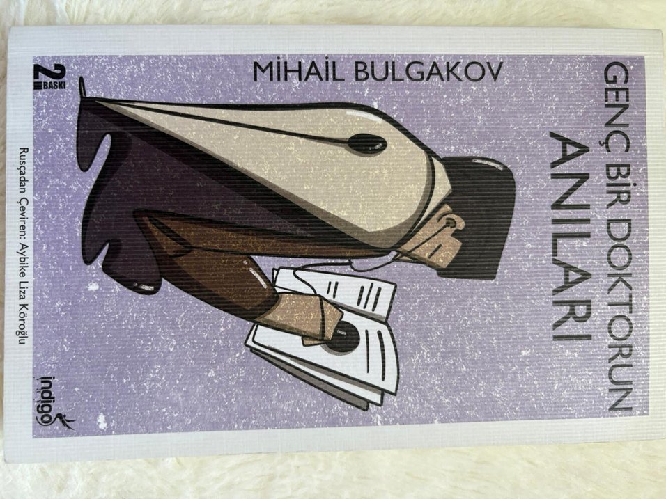 Mihail Bulgakov'un dedektif ve macera kitabı, kağıt tutan bir kişinin stilize kapak çizimi ile.