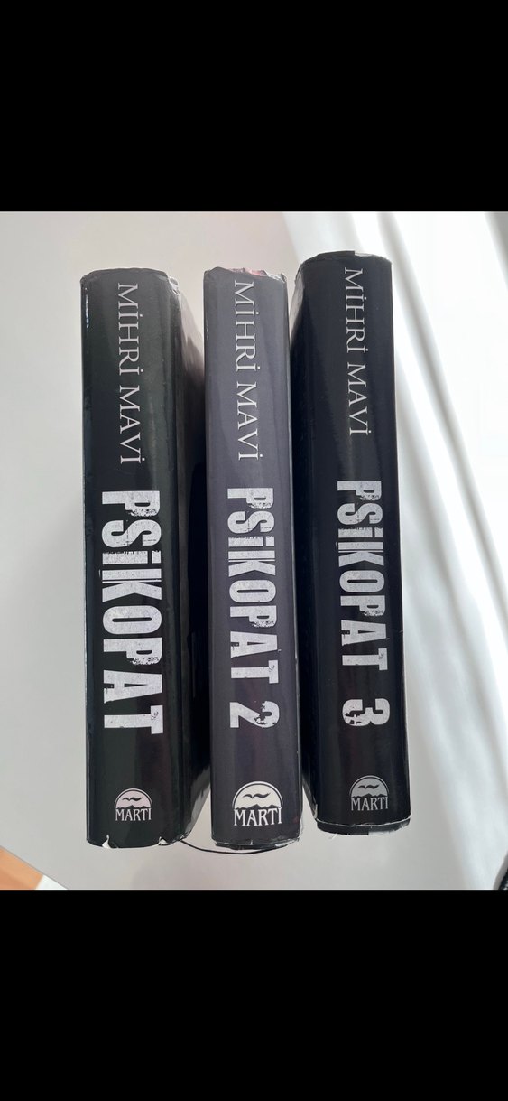 Mart yayınevi tarafından basılan Mihrî Mavi'nin Psikopat, Psikopat 2 ve Psikopat 3 adlı üç kitaplık serisi. Kitaplar ciltlidir. 2. kitabın bir sayfası sadece yırtıldı onun dışında hiçbir şey yoktur. Kitapları alırken içinden çıkan posterler durmaktadır.