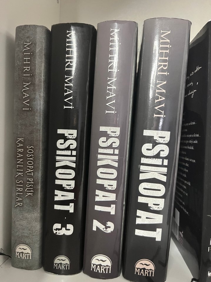 Marti yayınevi tarafından çıkarılan Mihrimavi'nin Psikopat, Psikopat 2, Psikopat 3 ve Sosyopat Psikik Karanlık Sırlar adlı dört romanlık seti.
