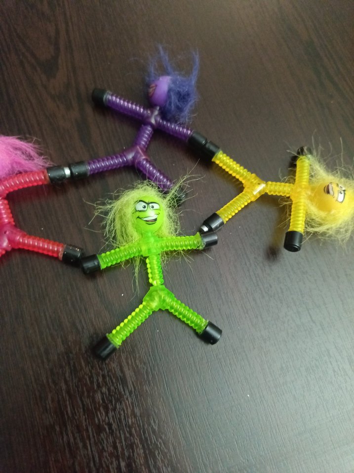 Tüylü saçlı, esnek yapılı ve canlı renklerde yüz ifadeli renkli figür oyuncaklar. Eğlenceli dekorasyon için uygundur.