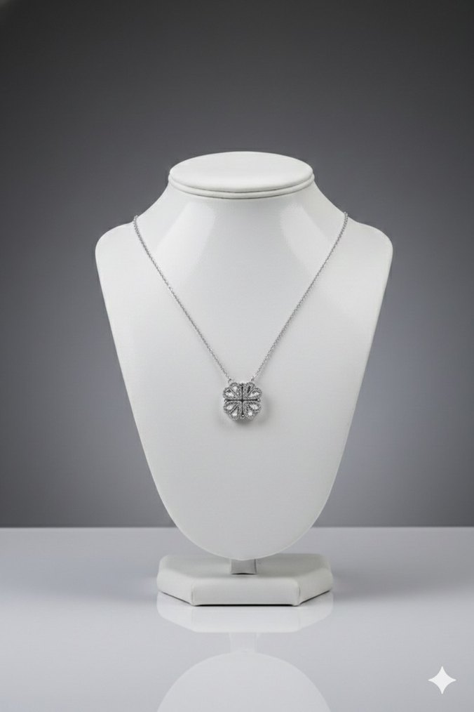 Mıknatıslı Yonca Model Kalp detaylı Çelik Kolye