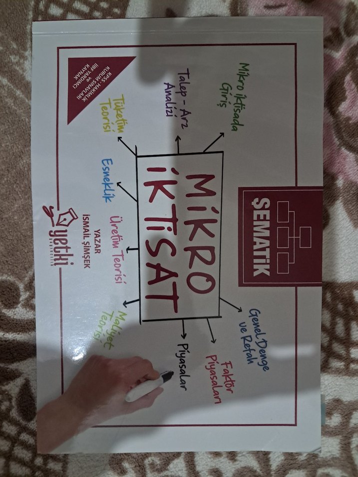 Mikro iktisat kavramlarını içeren bu kitap , talep-arz, piyasa analizi, üretim teorisi ve fiyat esnekliği gibi konuları içerir. Renkli el yazısı notlarla şematik düzenleme. ✍️
