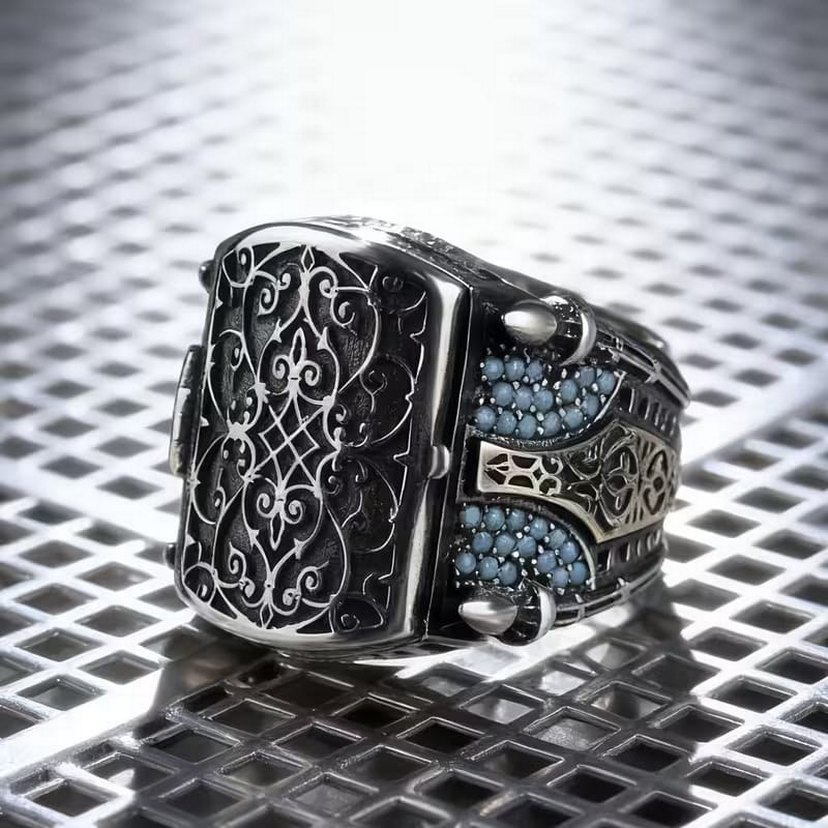 Gümüş İşlemeli Mikron Taşlı Yüzük