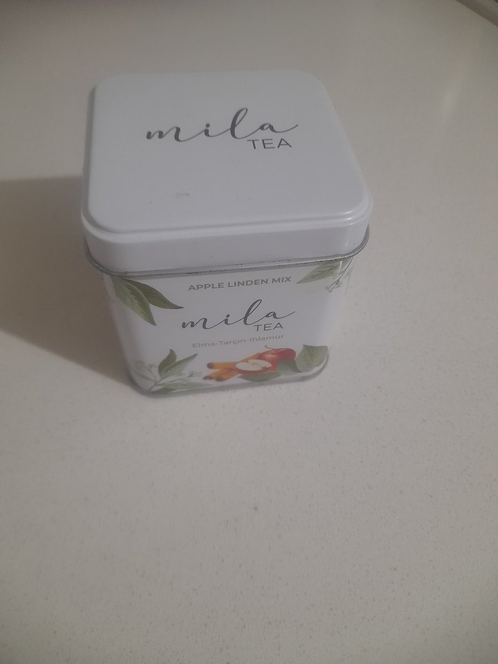 Mila Tea elma ıhlamur karışımı teneke kutuda. Elma ve ıhlamur aromalarını bir araya getirir.