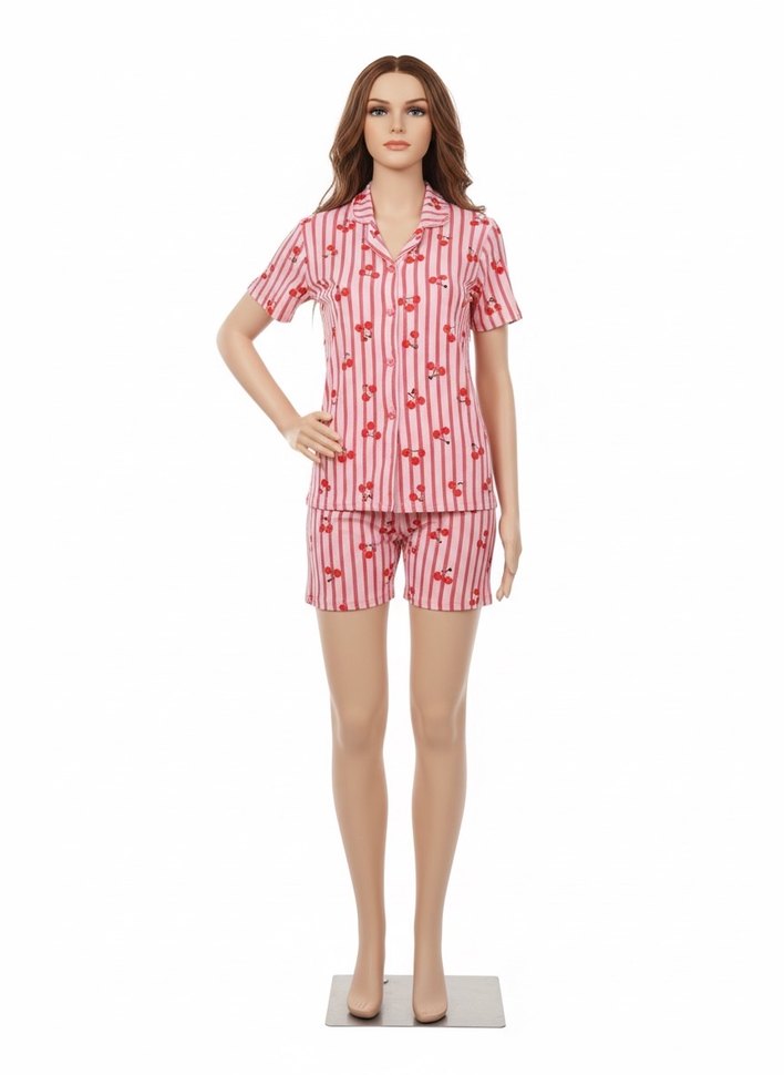 Milan kumaş Pembe Kısa Kollu Mini Kadın Pijama Takımı