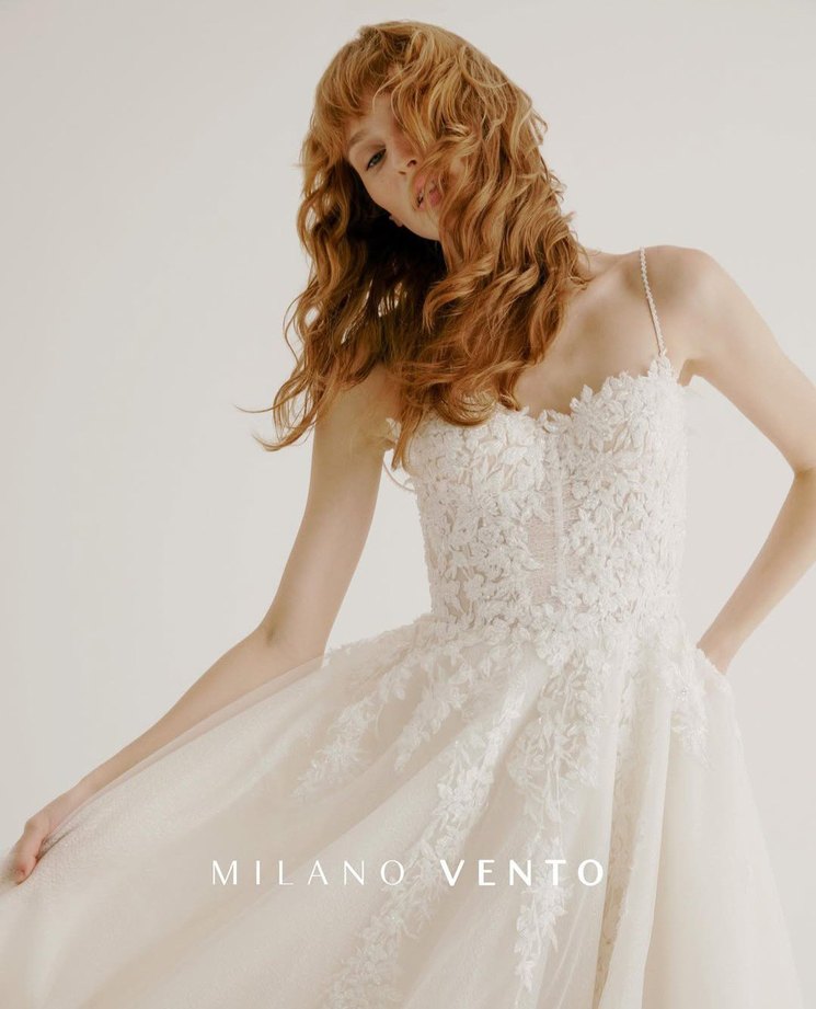 milano Vento İtalyan Askılı Uzun A Kesim Gelinlik
