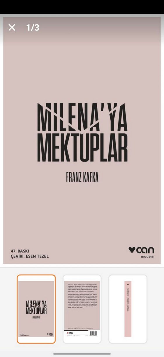 Franz Kafka'nın Milena'ya yazdığı mektuplar, Esen Tezel çevirisiyle Can Yayınları'ndan 47. baskı olarak yayımlandı. Hic okumadım bende bir tane daha varmıs yalnislikla almistim.