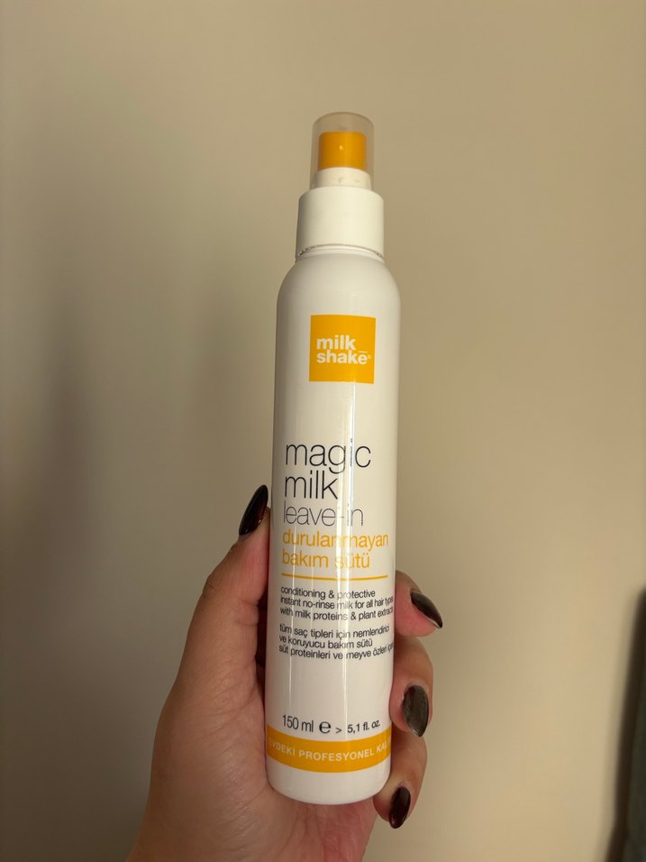 Milk Shake Magic Milk Saç Bakım Sütü, süt proteinleri ile saçları korur ve yumuşatır. 150 ml sprey şişede sunulur. ♀️